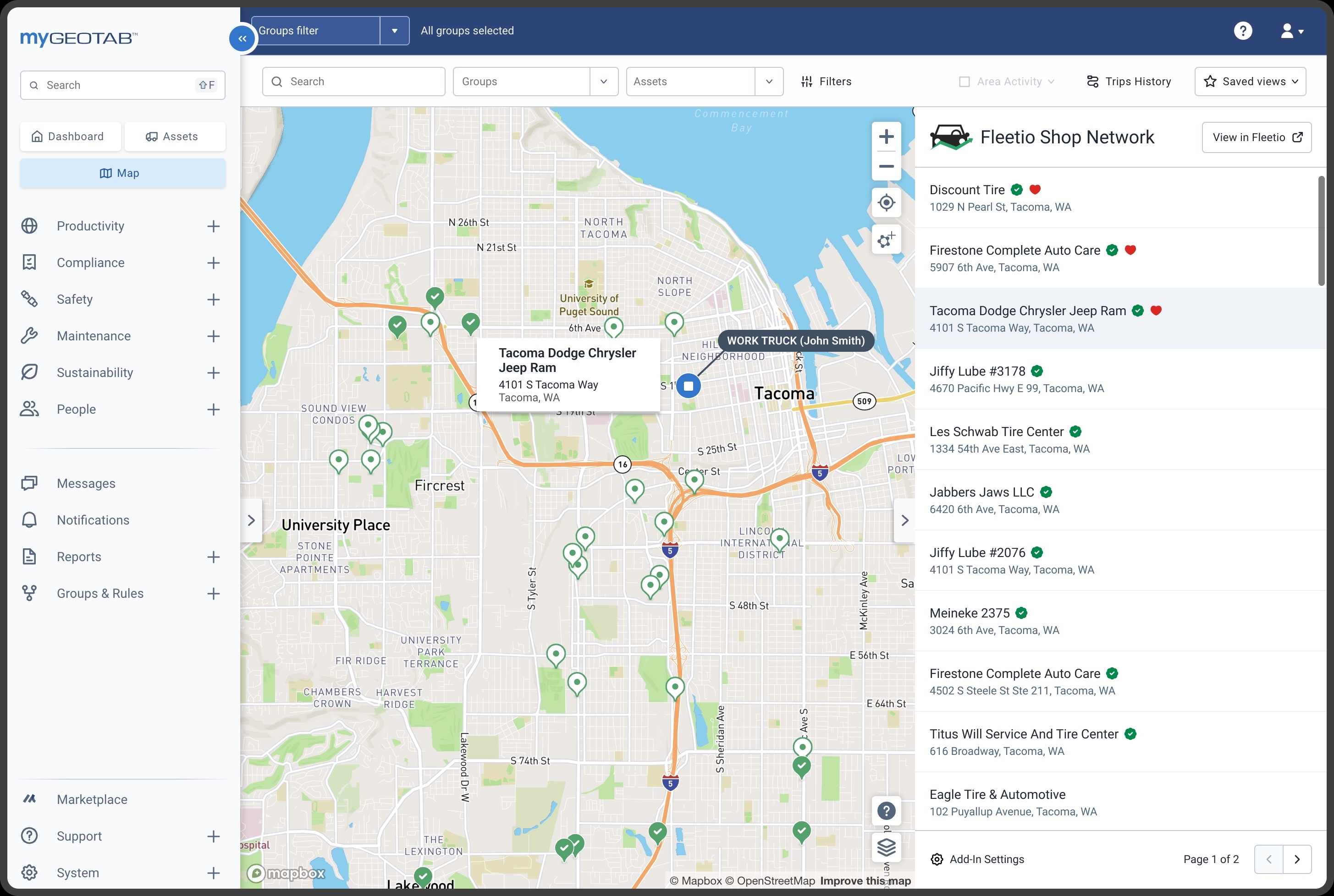 Fleetio’s Maintenance Shop Network connects fleets with tens of thousands of national, independent and mobile service providers to automate and expedite the repair approval process and get real-time visibility into outsourced maintenance activity. By bringing Fleetio functionality directly into MyGeotab, the Shop Network add-in helps fleet managers and dispatchers coordinate service, reduce downtime and view preferred shop options based on a vehicle’s current location.
